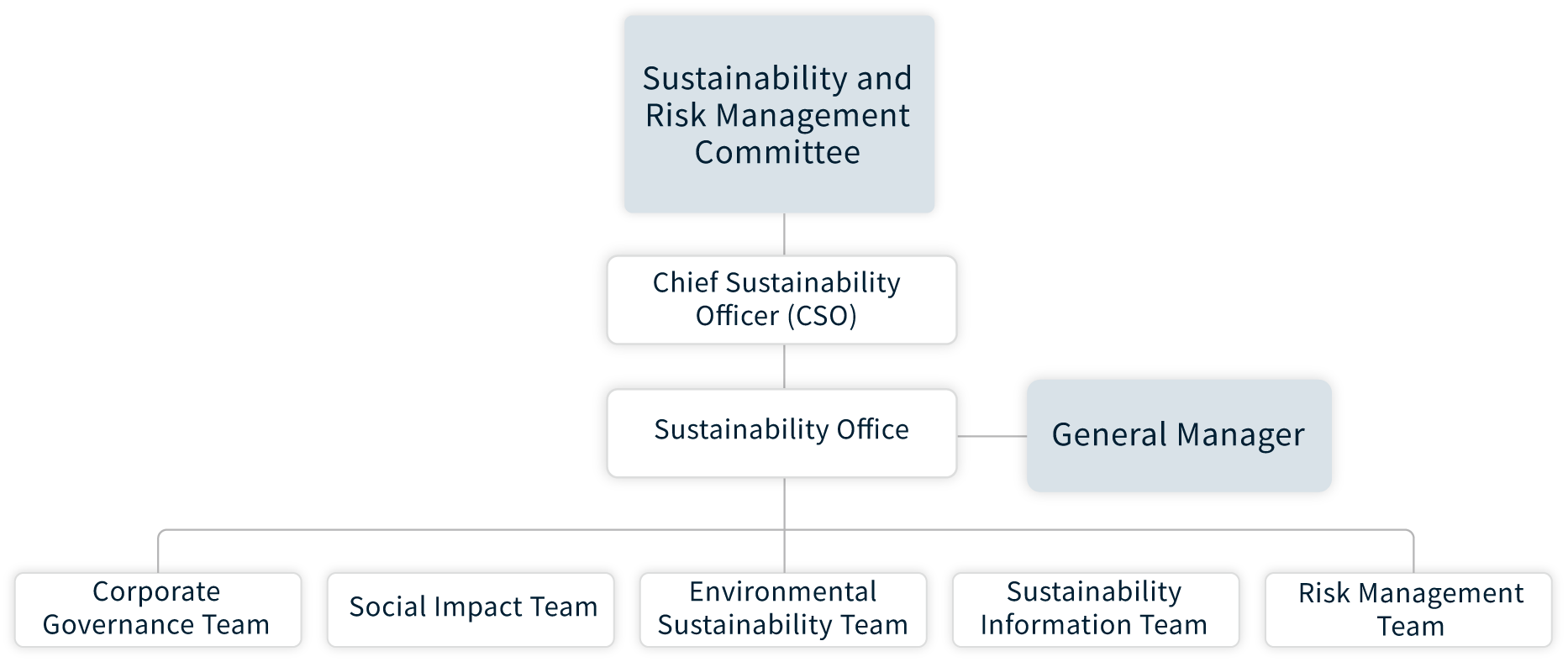 董事會下設立「永續發展暨風險管理委員會功能性委員會」 ,作為最高指導中心,訂定ESG願景與目標「永續發展暨風險管理委員會」 下設置永續長領導永續室,永續室負責將董事會的ESG戰略轉化為具體政策,並督導全公司執行,確保永續目標與營運緊密結合。